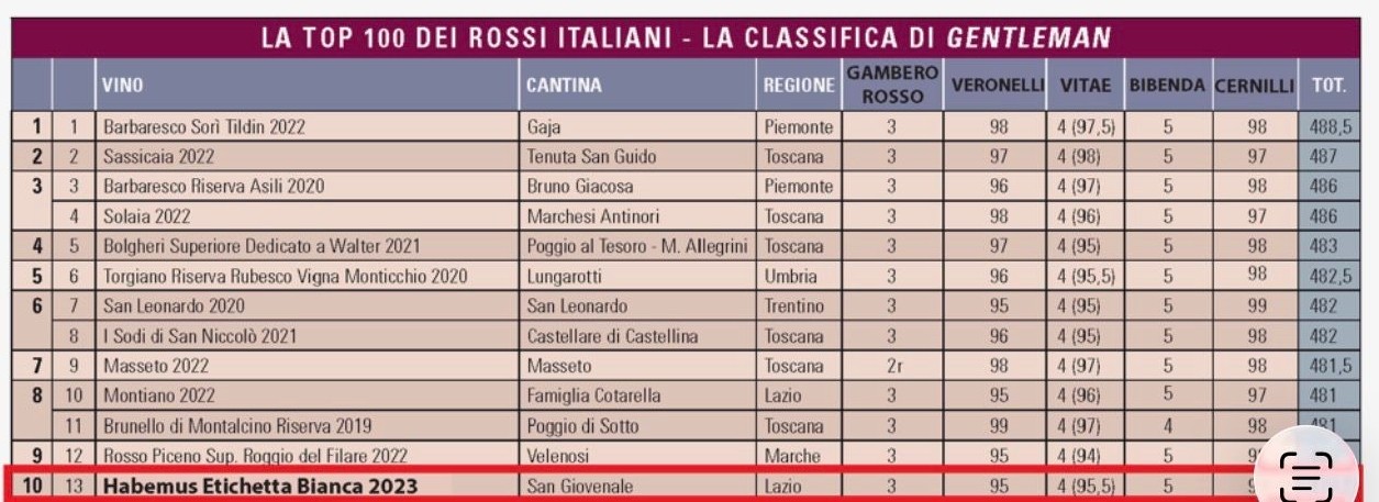 Ieder jaar stelt het Italiaanse lifestylemagazine The Gentleman Magazine: Italia een Top 100 samen van de beste rode wijnen van het land. Geen willekeurige lijst, maar een zogenaamde ‘superclassifica’, gebaseerd op de scores van de vijf belangrijkste wijnbijbels van Italië.