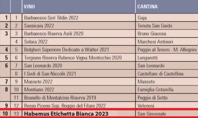 En dit jaar staat ‘onze’ HABEMUS op een indrukwekkende #10, tussen iconen als Tignanello, Solaia en Masseto. (Top 10, onderaan deze pagina)