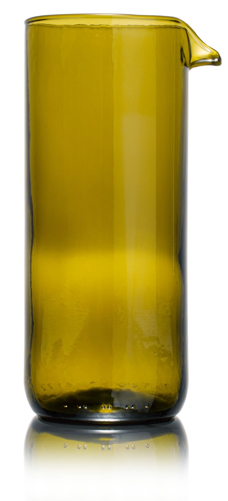 REBOTTLEDCarafe N°1 Edition Olive is een stijlvolle en duurzame karaf die elke tafel direct meer sfeer geeft. Hij wordt gemaakt van een gebruikte wijnfles die volledig met de hand wordt gesneden, geschuurd en gepolijst. De karaf heeft een inhoud van ongeveer zeshonderd milliliter en is met zijn achttien centimeter hoogte en zeven en een halve centimeter diameter compact, elegant en prettig in gebruik. Het lichte gewicht van ongeveer driehonderdvijftig gram maakt hem makkelijk te hanteren zonder in te leveren op stevigheid.